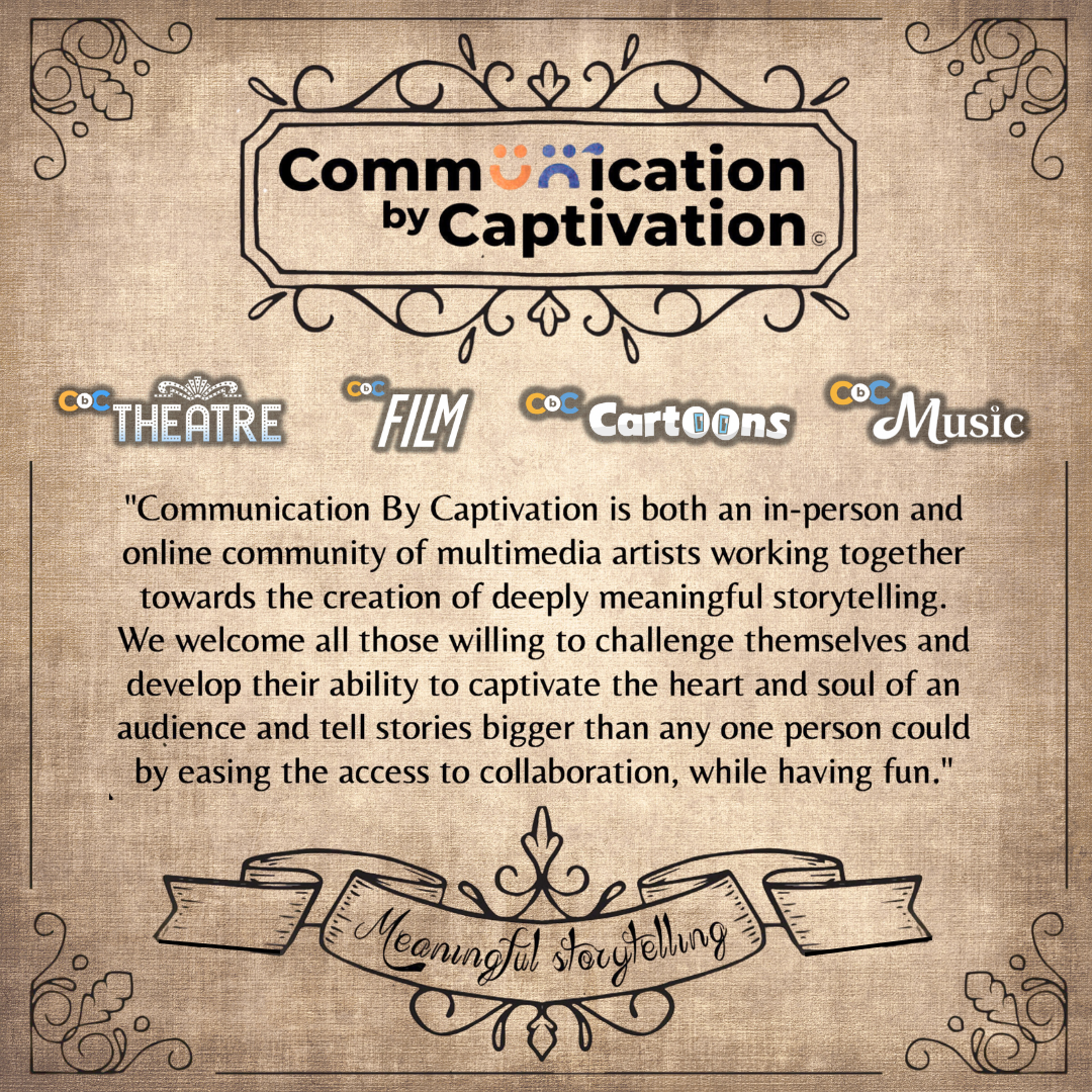 We at Communication by Captivation are a collective of multi-talented artists creating cartoons, film and live theatrical productions. Now that you've landed on our website, let the excitement commence! Explore our CONCEPTS, get a sense of our vision, and join us in Communication while Captivating!